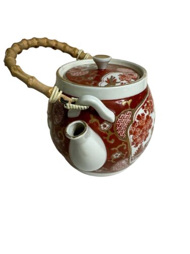 Old Vintage Dopin Japanese Porcelain Teapot Red With Gold Accents Hand Painted