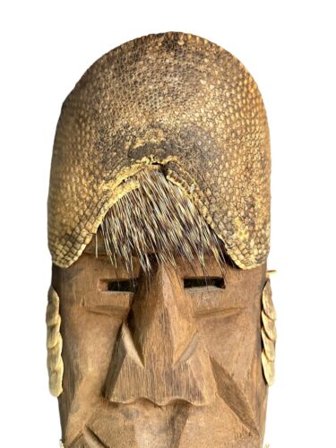 Vtg Guerrero Mexican Folk Art Dance Mask Carved Wood Porcupine Quills Armadillo