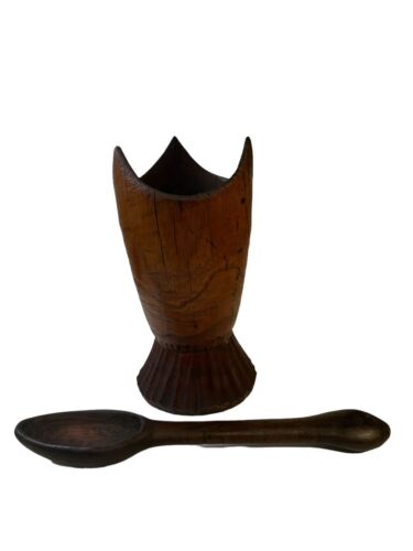 Antique Large Wooden Mortar & Pestle Mortar-Spoon 12” Pestle 10” X 5” Handmade