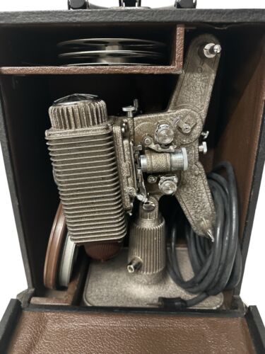 Old Vintage Revere Eight Movie Projector Case Film Reels Cord & Paper Working