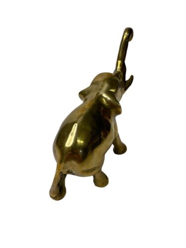 Vintage Solid Brass Elephant Figurine Statue Trunk Up Good Luck 5” Tall & Long