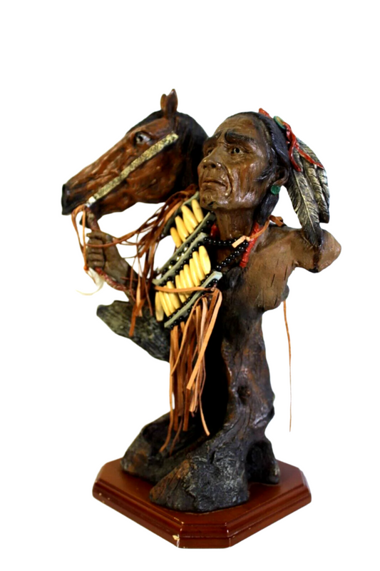 Native American and Horse Molded Resin Statue 13” Tall Decor Sculpture