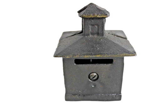 Antique Cast Iron Coin Bank Building School House Black & Red AC Williams