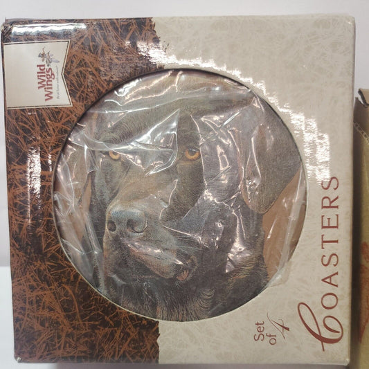 Wild Wings "loyal Companion" Brown Lab Coaster set of 4 with coaster holder New