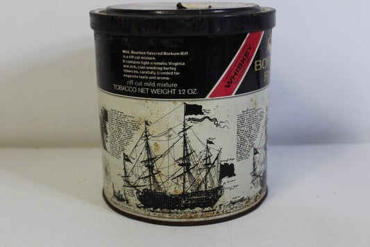 VTG Borkum Riff Flavored Bourbon Whiskey Pipe Tobacco Tin 12 Oz Empty Can w/ Lid