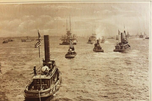 Antique 1919 Paper Print WW1 of the American Fleet returning to New York