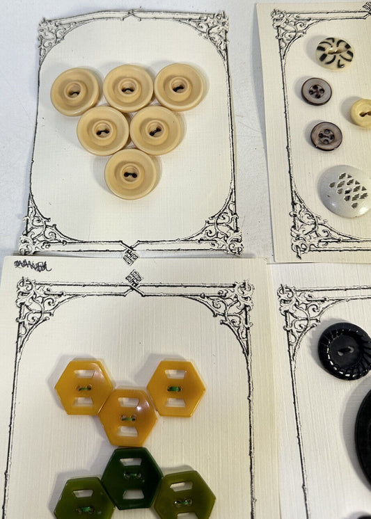 6 Old Vtg Sewing Buttons Cards Hand Sewn On Cards Collectible Sewing Buttons
