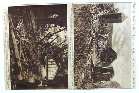 Antique 1919 Paper Print from Savage Devastation left by German Armies WW1