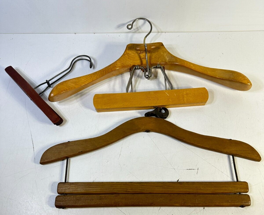 The Vtg Setwell Wooden Suit Hanger and 2 handmade antique wooden hangers