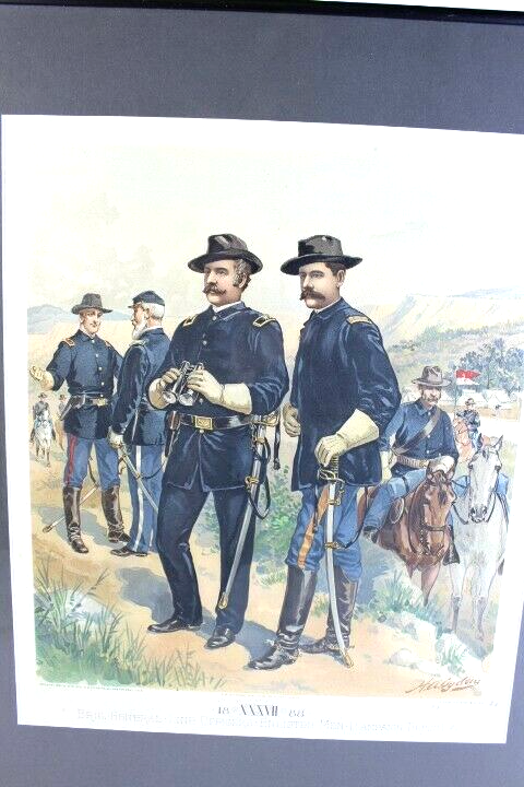 Antique Litho Framed Brig General Line Officers Enlisted Men 1888 High Quality