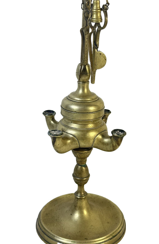Antique Brass Whale Oil Lamp Candle Light Oil Lamp with Tools 1800’s 24” Tall