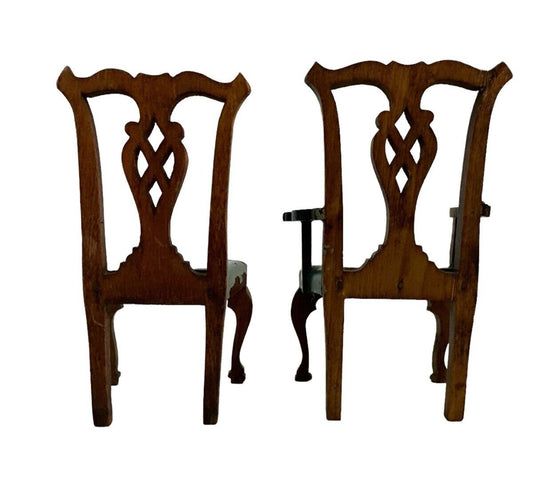• 2 Vintage TYNIETOY  Chippendale Arm Chair 1:12 Dollhouse Miniature 1930’s