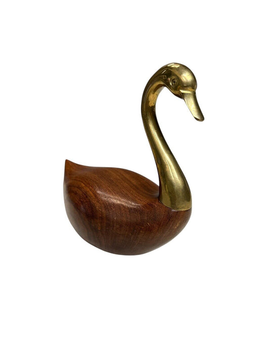 • Vintage 1950's MCM Handmade Brass and Rosewood Swan Goose