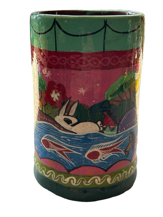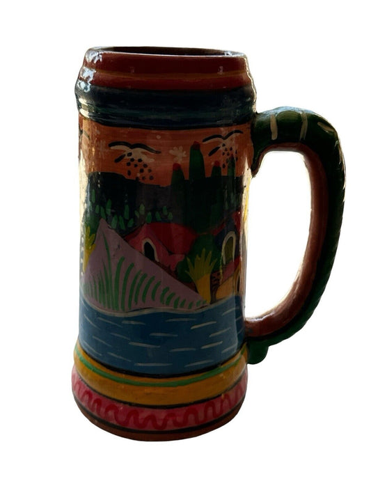 Beautiful Vintage Hand painted Glazed Natural Clay Pottery Mug Central Mexico