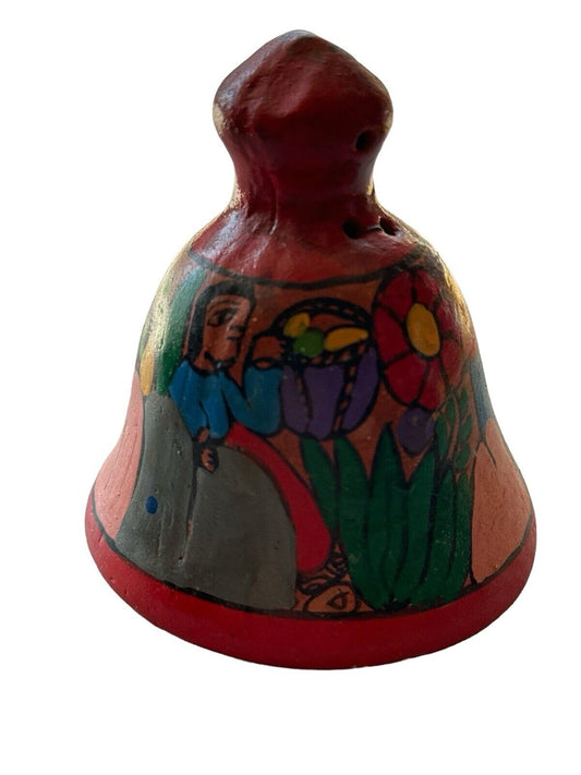 Talavera Hand Painted Mexican Folk Art Pottery Bell Colorful 4” x 3” Authentic