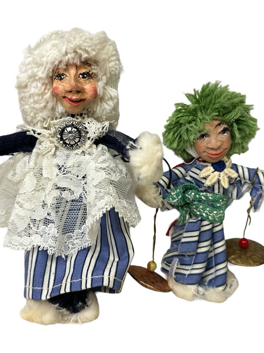 Lot Of 2 Vtg Small Handmade Artesian Folk Art Clay & Fabric Ornaments