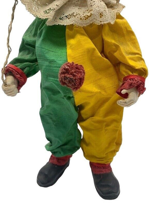 • Vintage Handmade 10” Paper Mache Artisan Clown With Balloon