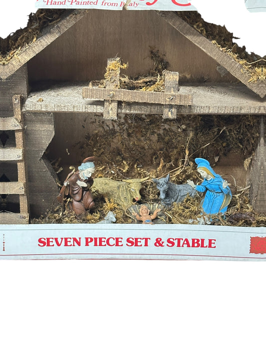 • Vintage Hand Painted 7 piece Sears Nativity Set in Original Box Pre-Owned