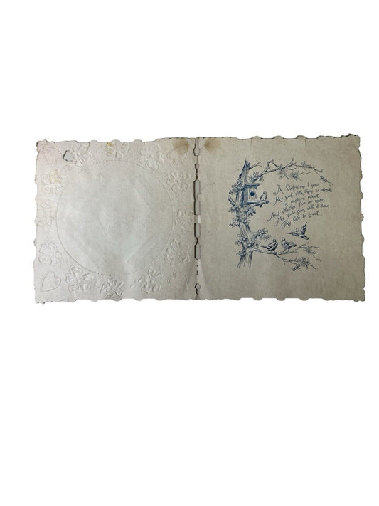 Vtg 1920s Valentine Unused Heart Flowers Kids Puppy Love Paper Lace Doily 7”x 7”