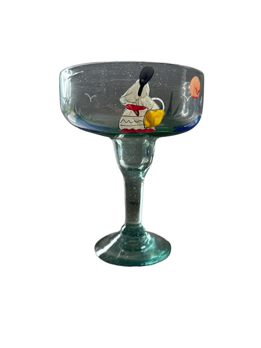 Authentic Blown Glass Hand Painted Margarita Barware Made In Mexico Tonala
