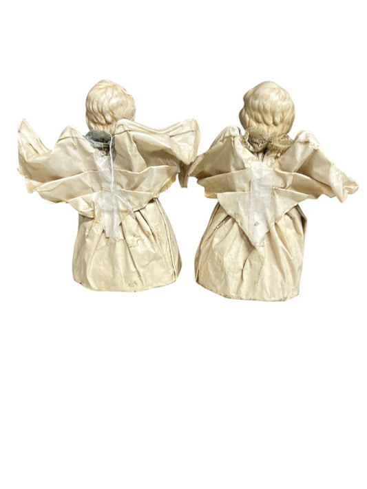 Pair of 2 Vintage Nuno Mexico Paper Mache Angel Folk Art Doll Figure Statue 6"