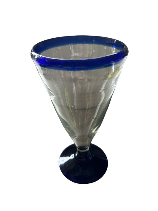 Authentic Blown Glass Cocktail Goblet Cobalt Blue Made In Mexico Tonala 5.5”