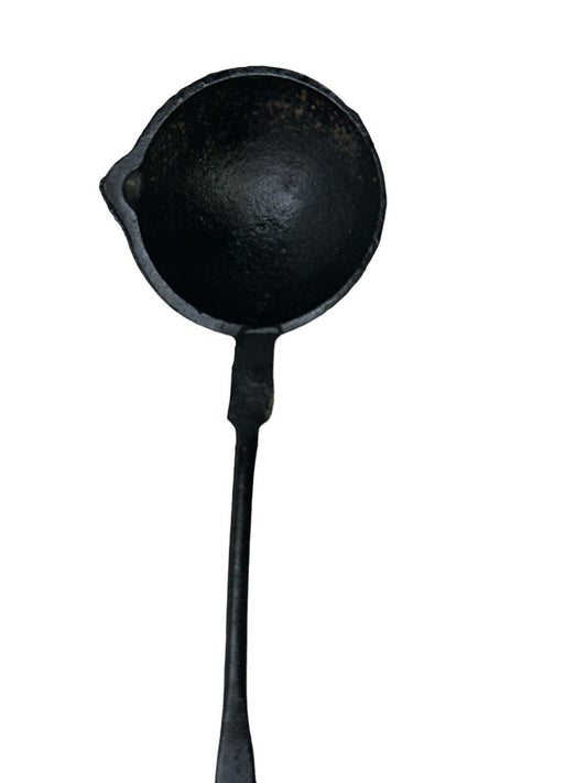 Vintage 11” Cast Iron Black Ladle Forge Lead Smelting Cooking Decor Hook End