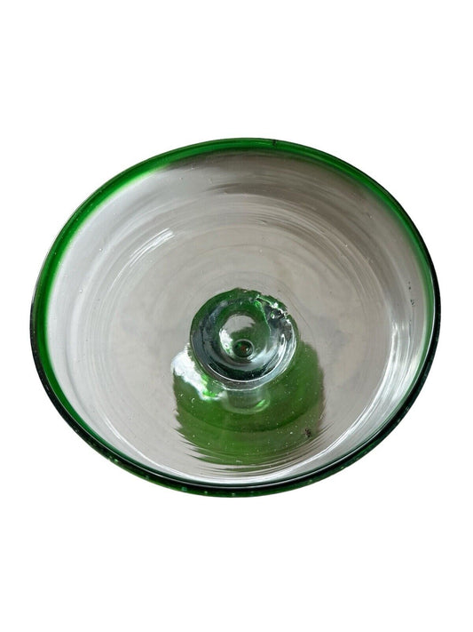 Vintage Authentic Mexican Hand Blown Margarita Glass Green Rim Cocktail 6.5”