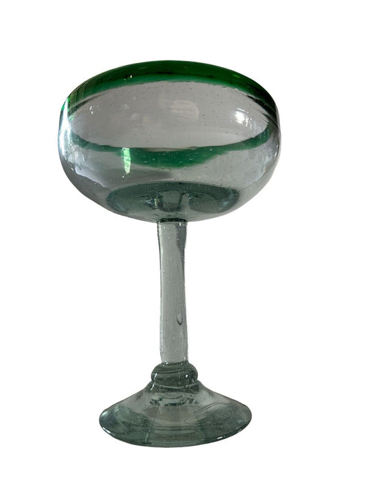 Vintage Authentic Mexican Hand Blown Margarita Glass Green Rim Cocktail 6.75”