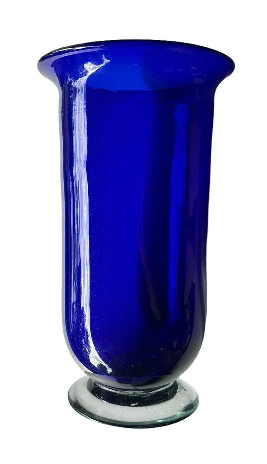 VTG 1990’s Large Hand Blown Cobalt Blue Glass Vase Made In Mexico