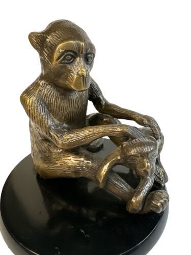 Bronze Sculpture Mother Monkey And Child Bronze Figurine Made In India 6” Tall