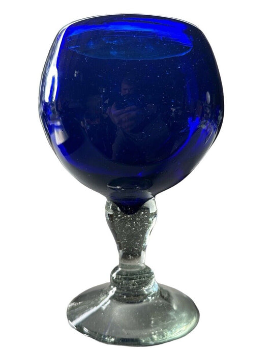 Authentic Blown Glass Large Bar Goblet Cobalt Blue Made In Mexico Tonala