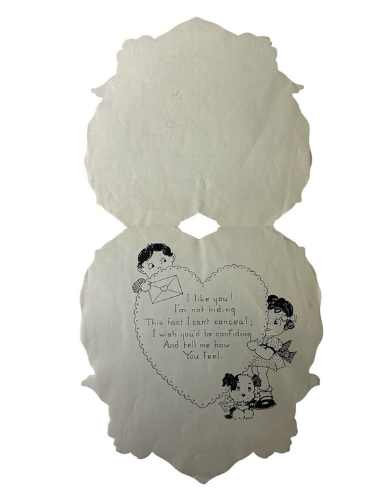 Adorable German Antique Vintage Pull-Tab Children’s Valentine’s Day Card 9” x 7”