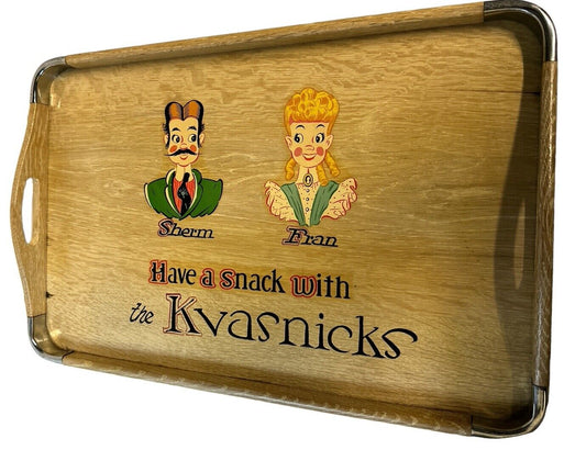 Vintage Wooden Serving Tray MCM Hand Painted Japan Mod MCM Handled Platter