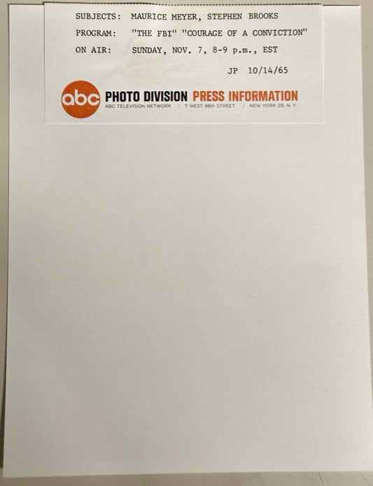 1965 Press Release Photo Scene From The FBI Maurice Meyer Stephen Brooks