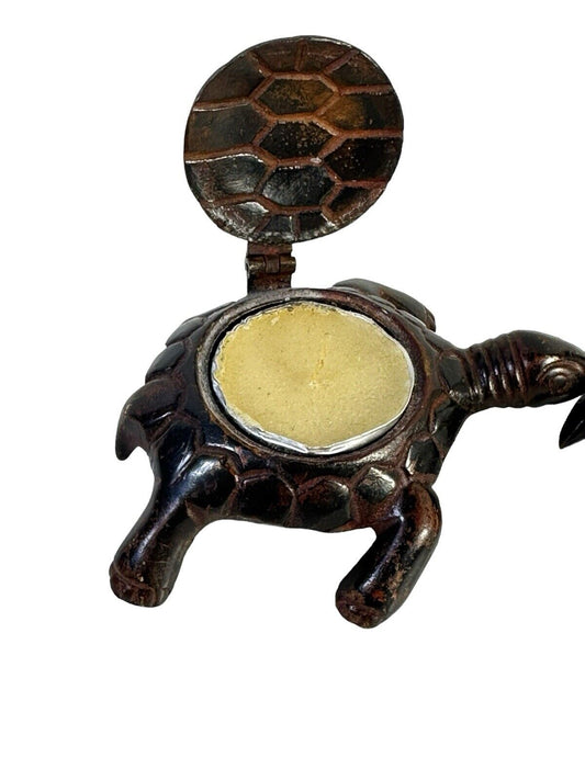 Lot of 2 Good Luck Mother and Baby Candle Incense Holder Bronzed Metal Turtles