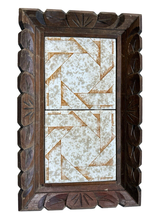 Vintage MCM Wood & Tile Folk Art 11”x 7” Hand Made In Central Mexico