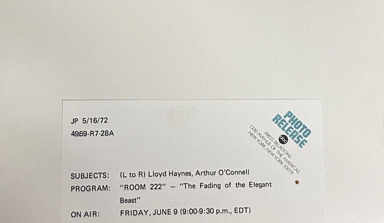 1972 ABC TV Press Release Photo 7”x9” Room 222 Lloyd Haynes & Arthur O’Connell