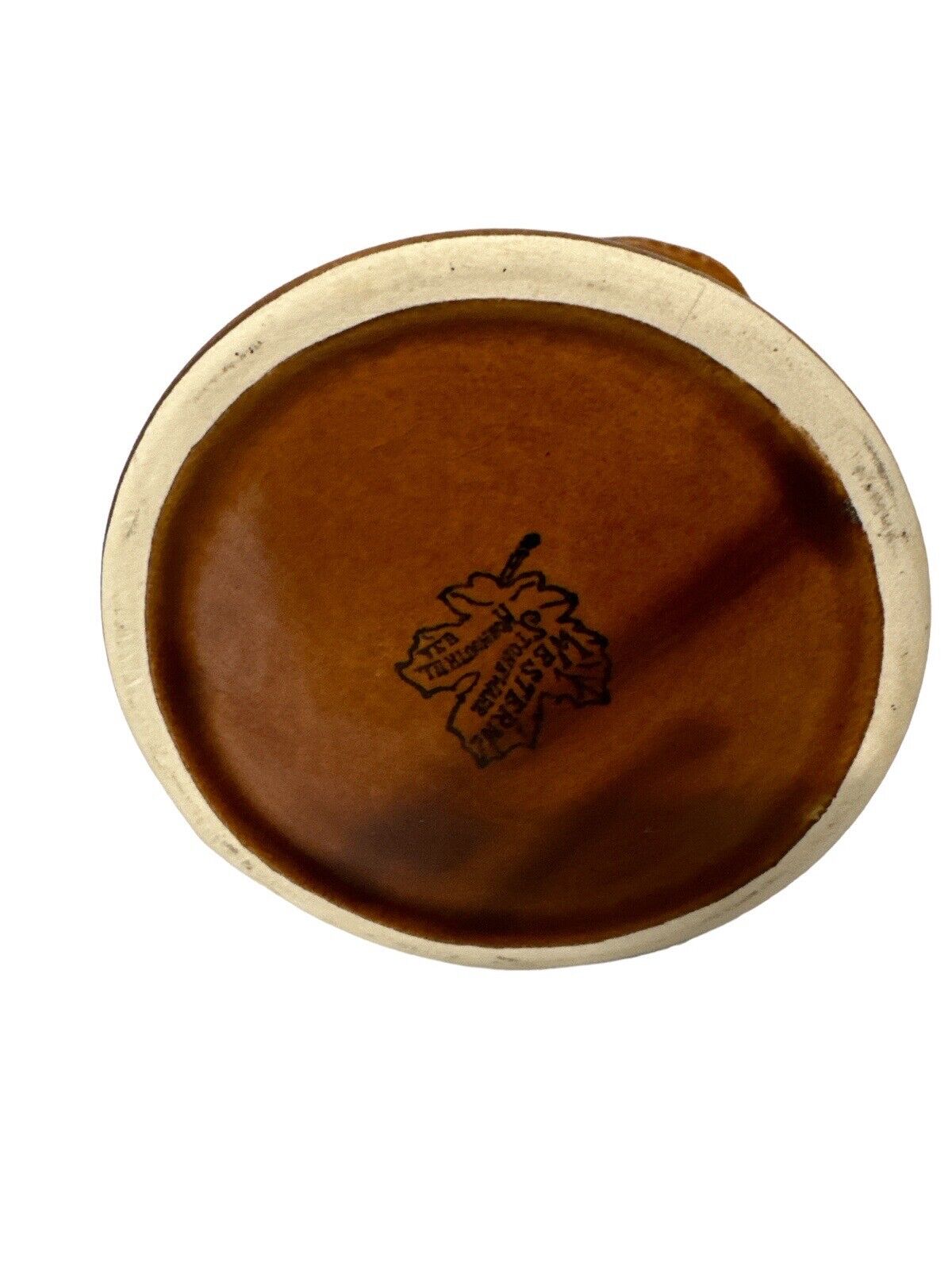 Up for sale is a unique and collectible stoneware pitcher from the 1986 Collectors 11th Annual Convention. This original Western brand pitcher features a Sleepy Eye pattern in a beautiful brown color. The pitcher is in great shape and would make a great addition to any collection. The backstamp is printed and the pitcher is an original, not a licensed reproduction. If you're a fan of vintage pottery and glassware, this is a must-have piece.