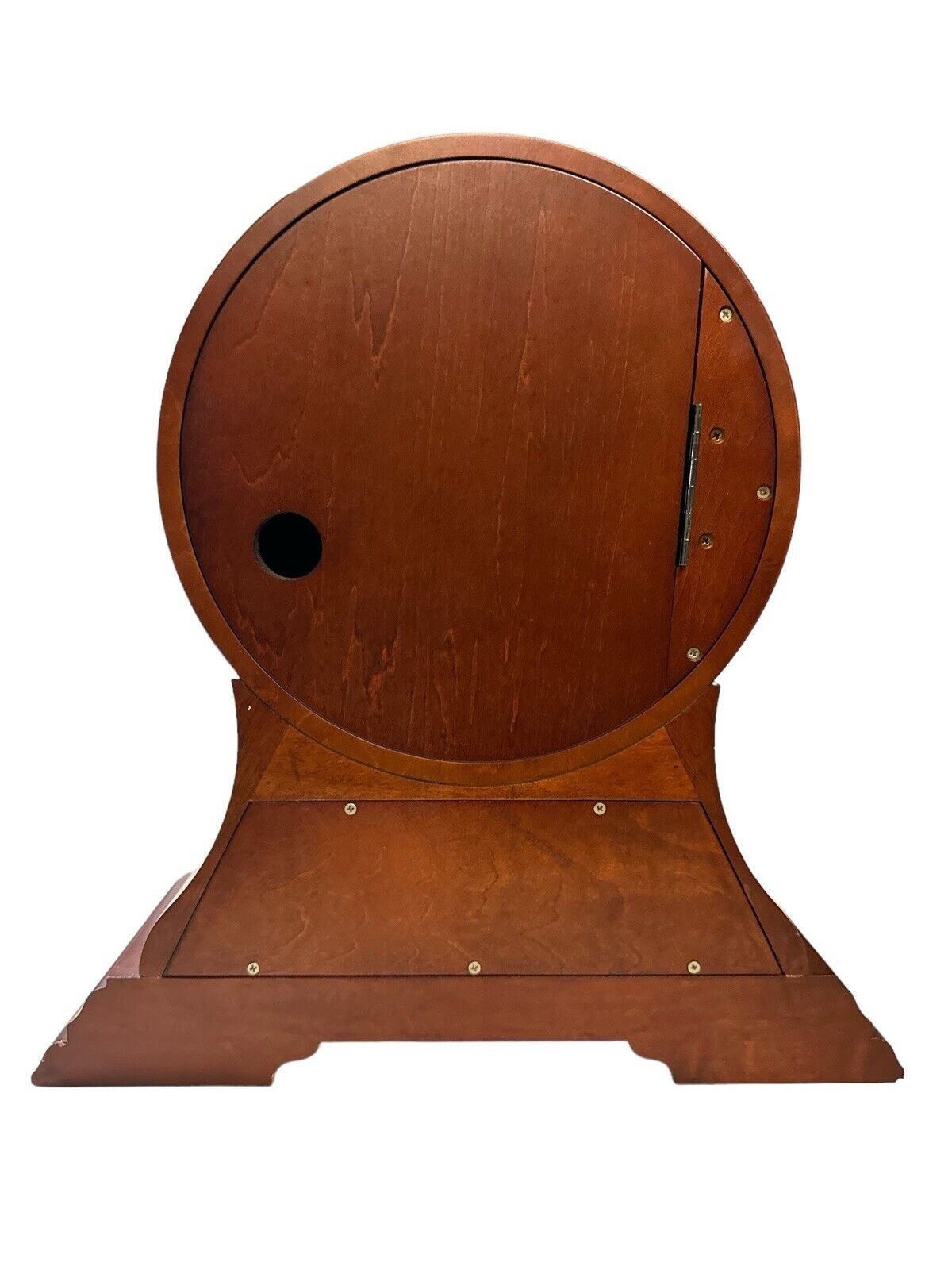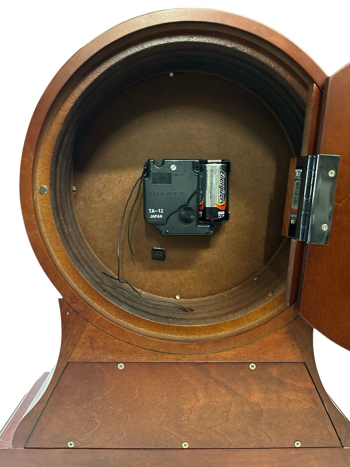 Note: This clock is in very good condition but does show some browning on the inside of the glass as shown in photos. The wood is in very good condition