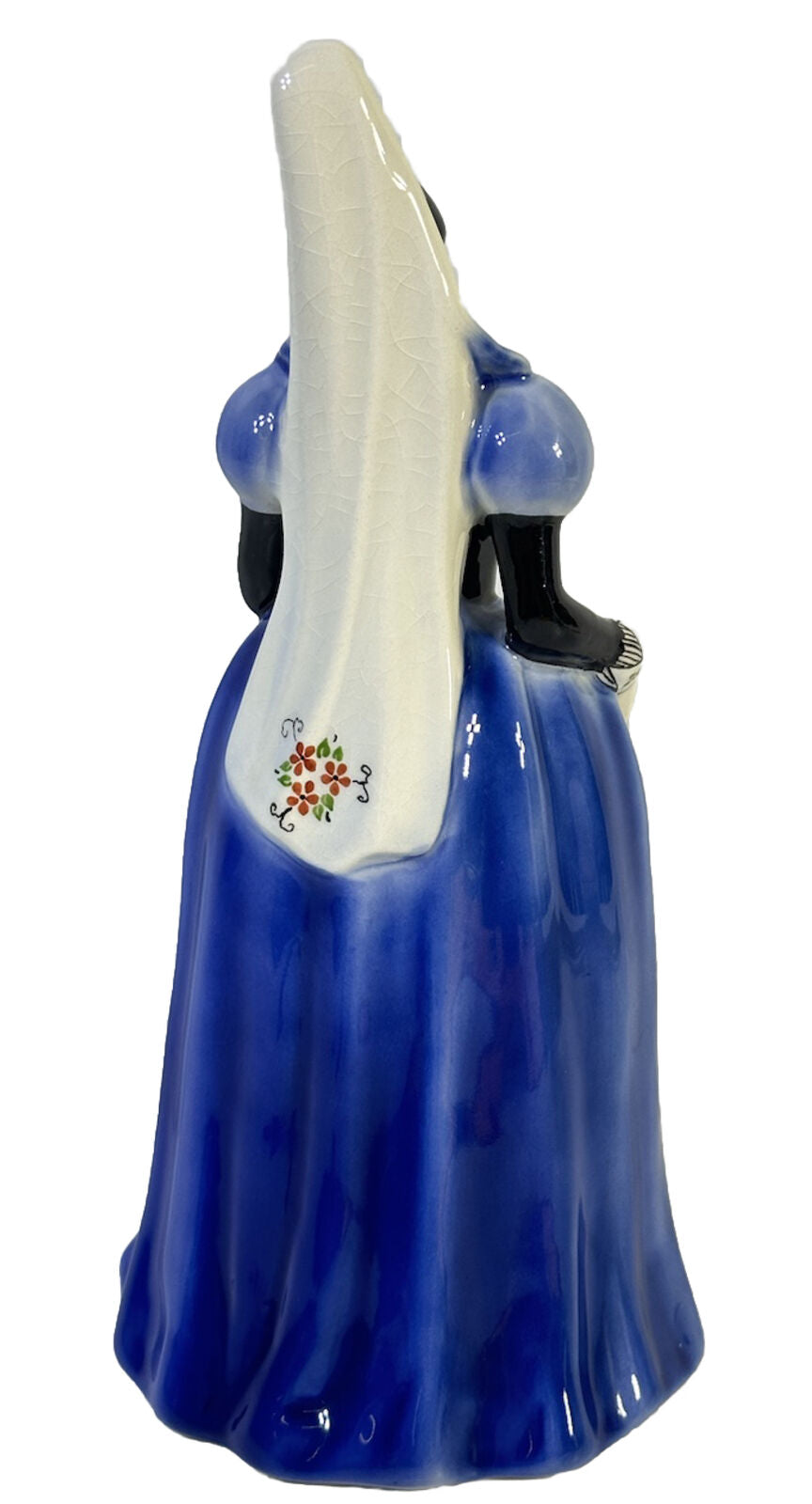 The piece showcases a beautiful queen theme, depicting a woman in royal attire with blue, black, white, and green colors. It is an original piece from the 1920-1949 time period and was batch-produced in the United States with handmade details. This collectible item is perfect for all occasions and would make an excellent addition to any decorative collection.